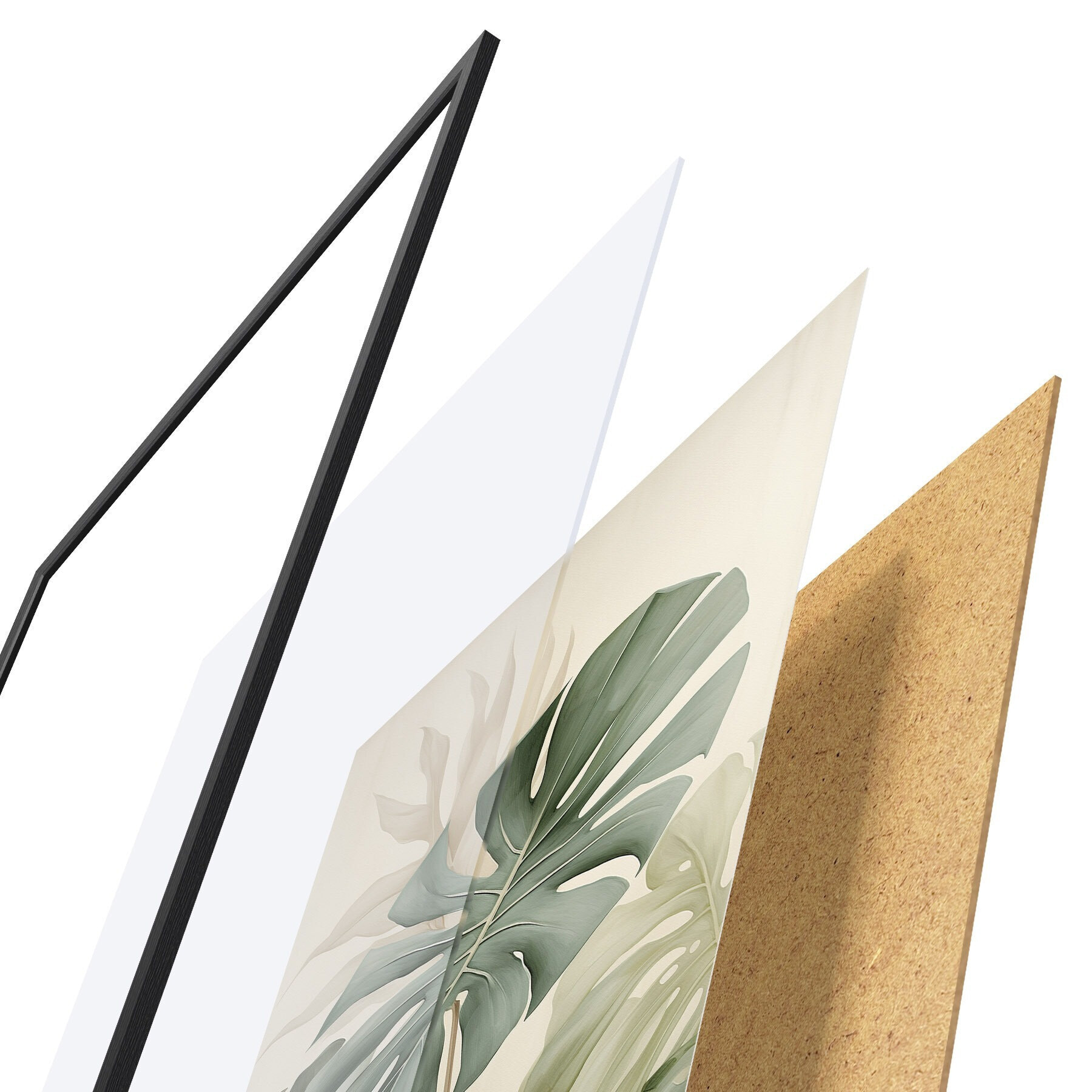 El póster consta de marco, plexiglás, imagen impresa y soporte de aglomerado. El póster puede colgarse inmediatamente en la pared gracias a los soportes de la parte posterior.