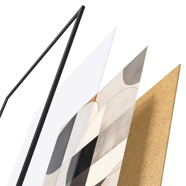 El póster consta de marco, plexiglás, imagen impresa y soporte de aglomerado. El póster puede colgarse inmediatamente en la pared gracias a los soportes de la parte posterior.