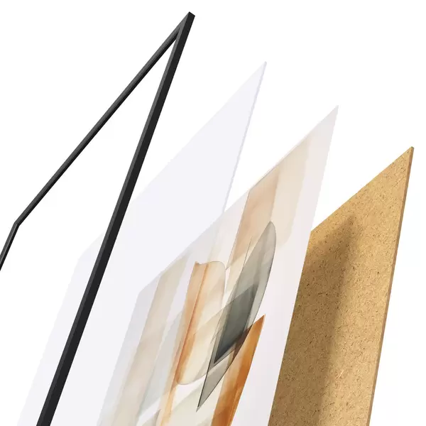 El póster consta de marco, plexiglás, imagen impresa y soporte de aglomerado. El póster puede colgarse inmediatamente en la pared gracias a los soportes de la parte posterior.