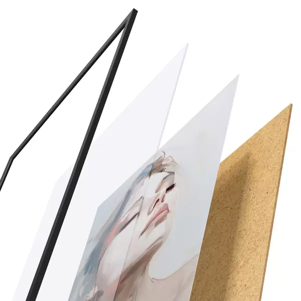 El póster consta de marco, plexiglás, imagen impresa y soporte de aglomerado. El póster puede colgarse inmediatamente en la pared gracias a los soportes de la parte posterior.