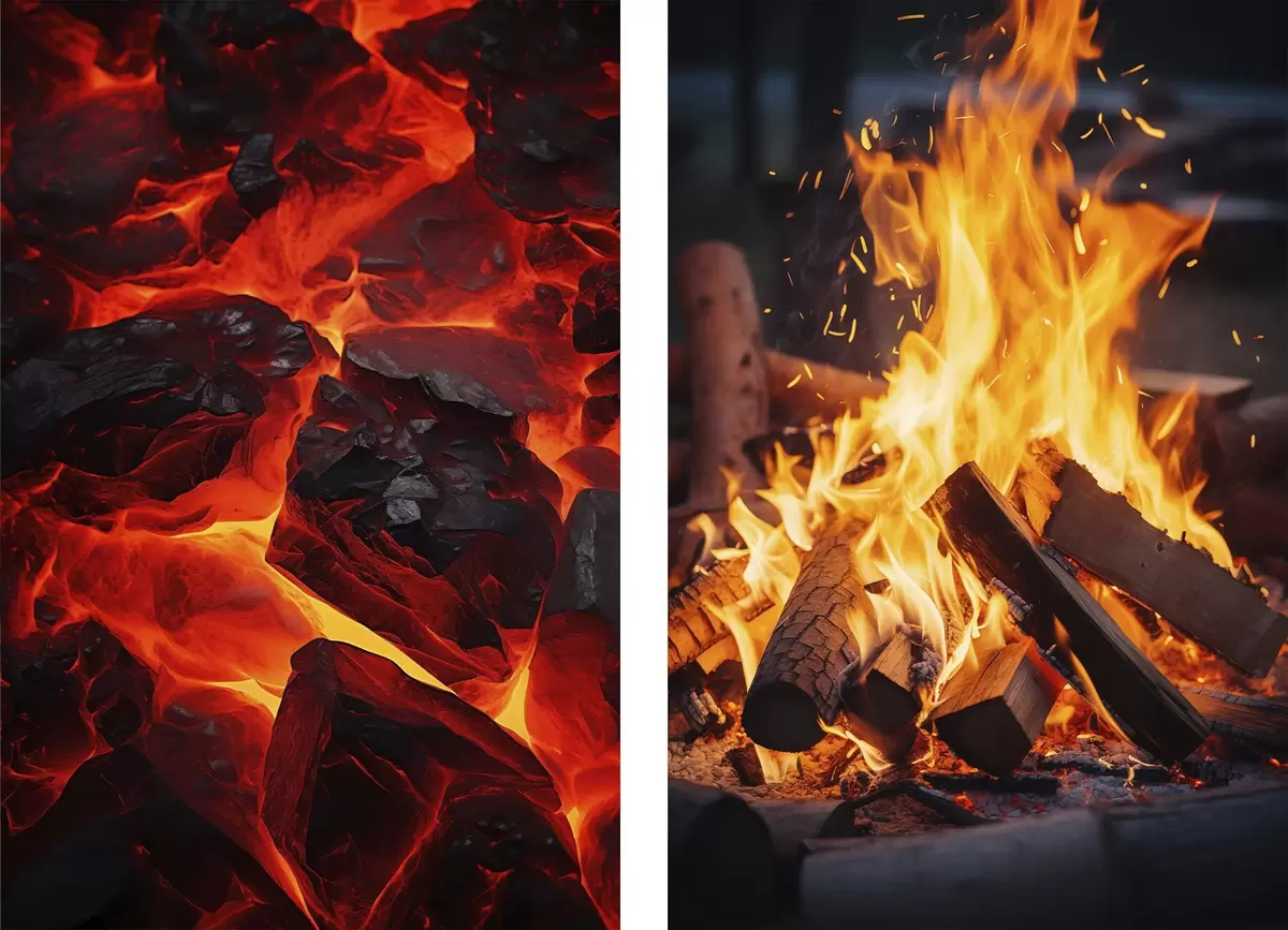 Poster Carbones ardientes y fuego llameante en la oscuridad d00696