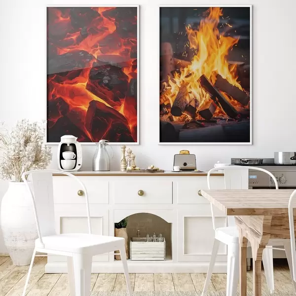 Poster Carbones ardientes y fuego llameante en la oscuridad Nr d00696