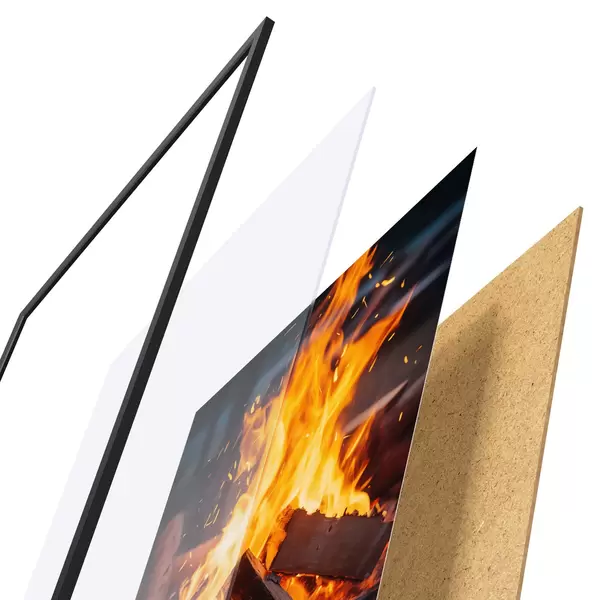 El póster consta de marco, plexiglás, imagen impresa y soporte de aglomerado. El póster puede colgarse inmediatamente en la pared gracias a los soportes de la parte posterior.