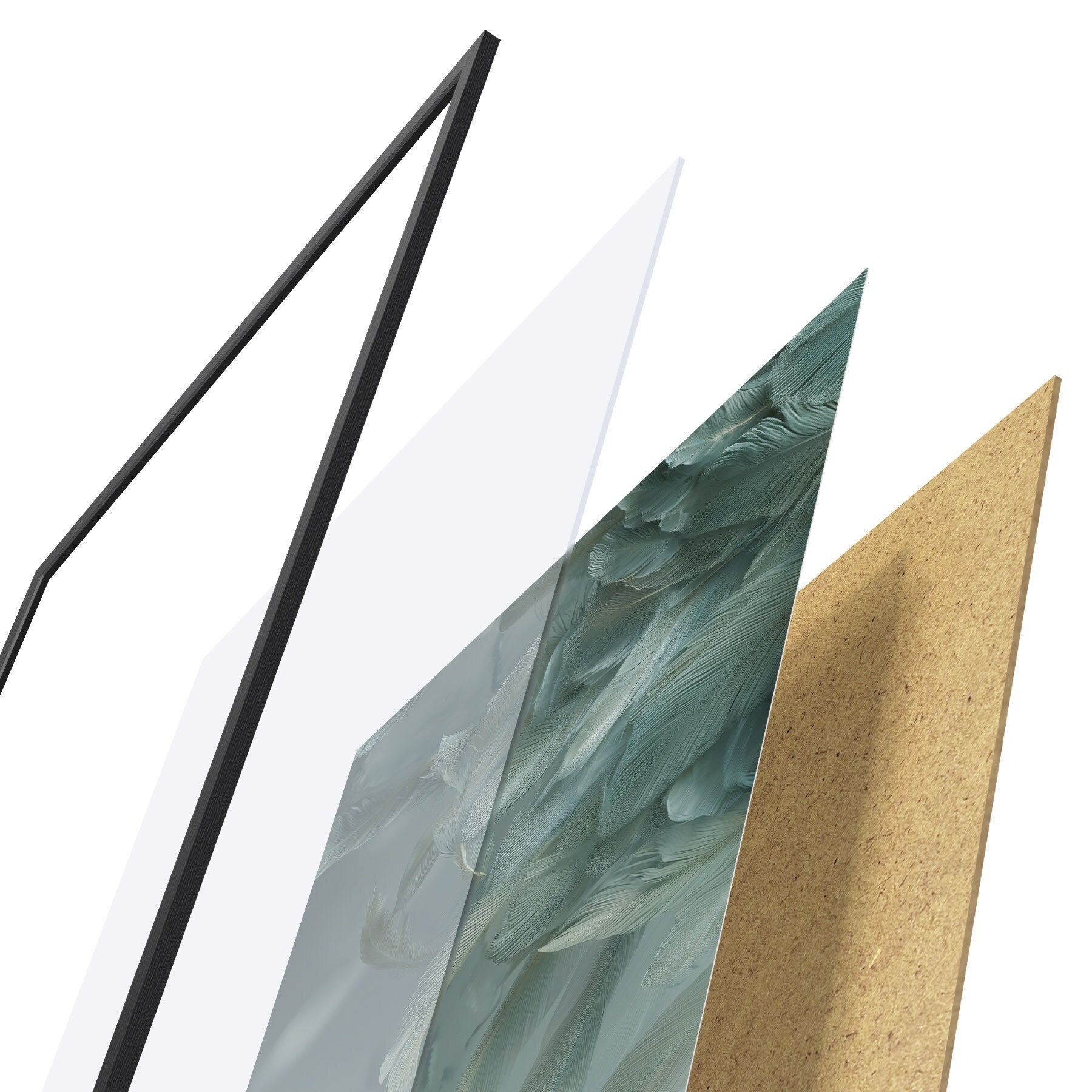 El póster consta de marco, plexiglás, imagen impresa y soporte de aglomerado. El póster puede colgarse inmediatamente en la pared gracias a los soportes de la parte posterior.