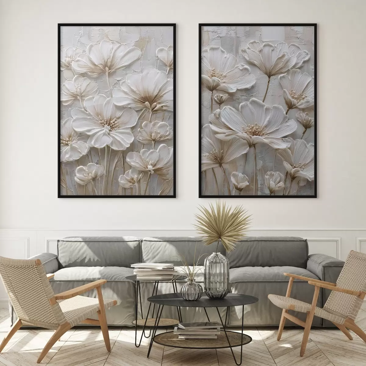 Poster flores de crema con estilo impasto imitado d00701