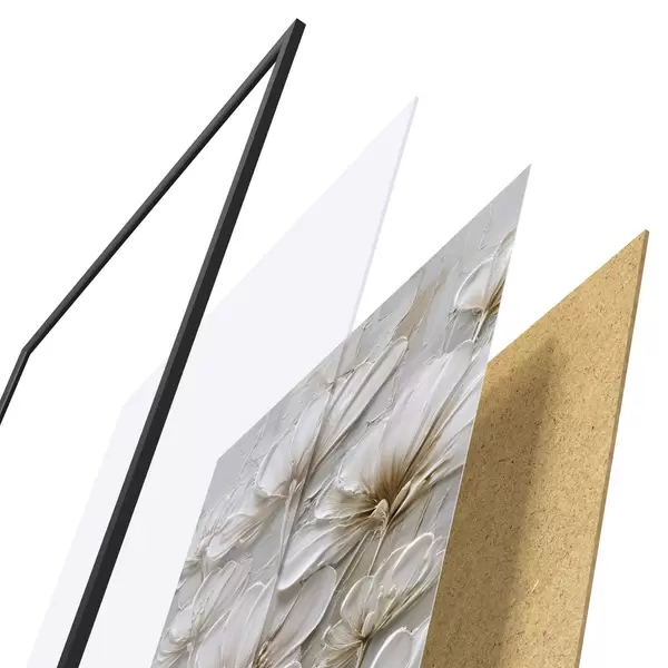 El póster consta de marco, plexiglás, imagen impresa y soporte de aglomerado. El póster puede colgarse inmediatamente en la pared gracias a los soportes de la parte posterior.