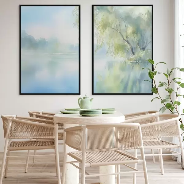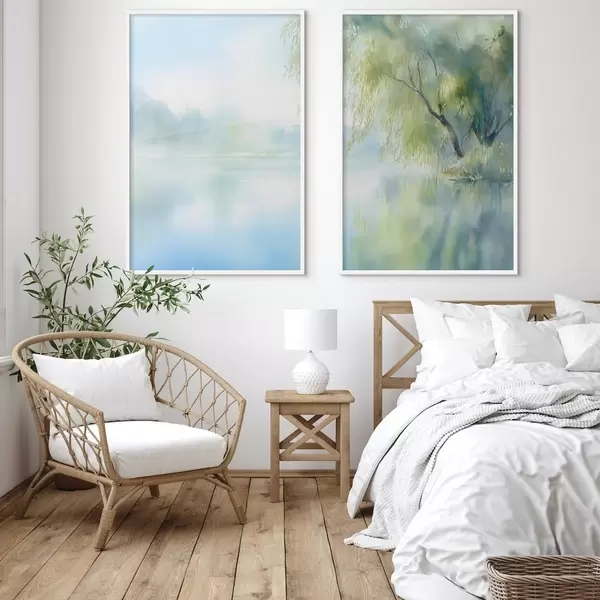Poster árbol de sauce a orillas del lago en estilo acuarela Nr d00702