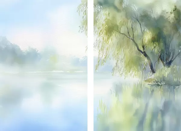 Poster árbol de sauce a orillas del lago en estilo acuarela Nr d00702
