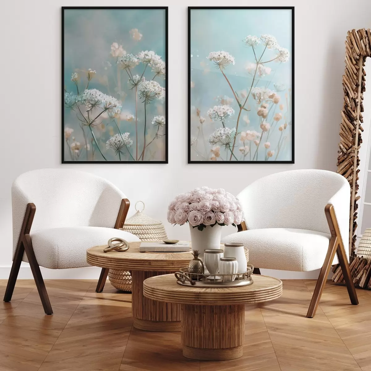 Poster Flores de Queen Anne's Lace en estilo acuarela sobre fondo azul Nr d00705