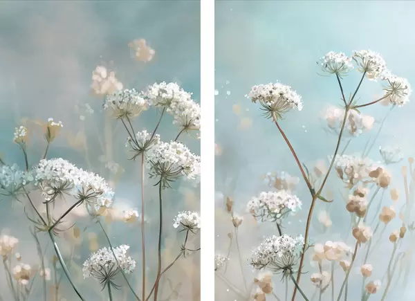 Poster Flores de Queen Anne's Lace en estilo acuarela sobre fondo azul Nr d00705