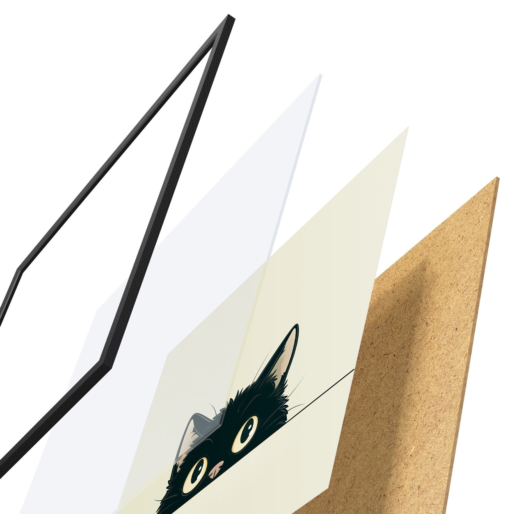 El póster consta de marco, plexiglás, imagen impresa y soporte de aglomerado. El póster puede colgarse inmediatamente en la pared gracias a los soportes de la parte posterior.
