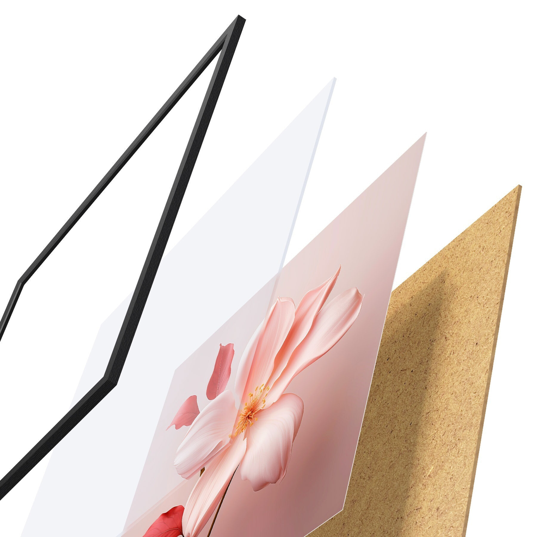 El póster consta de marco, plexiglás, imagen impresa y soporte de aglomerado. El póster puede colgarse inmediatamente en la pared gracias a los soportes de la parte posterior.
