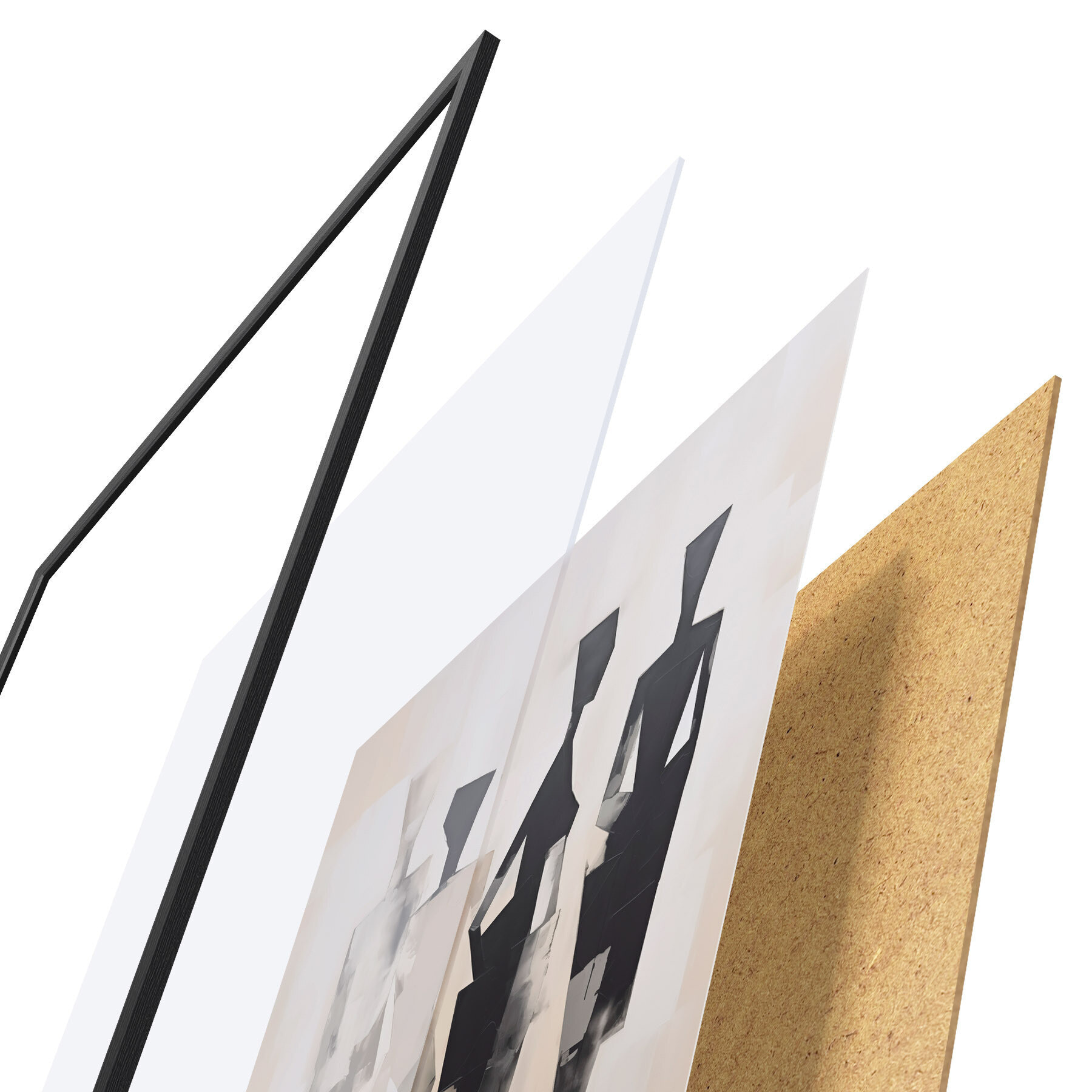 El póster consta de marco, plexiglás, imagen impresa y soporte de aglomerado. El póster puede colgarse inmediatamente en la pared gracias a los soportes de la parte posterior.