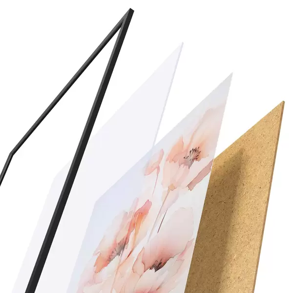 El póster consta de marco, plexiglás, imagen impresa y soporte de aglomerado. El póster puede colgarse inmediatamente en la pared gracias a los soportes de la parte posterior.