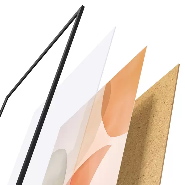El póster consta de marco, plexiglás, imagen impresa y soporte de aglomerado. El póster puede colgarse inmediatamente en la pared gracias a los soportes de la parte posterior.