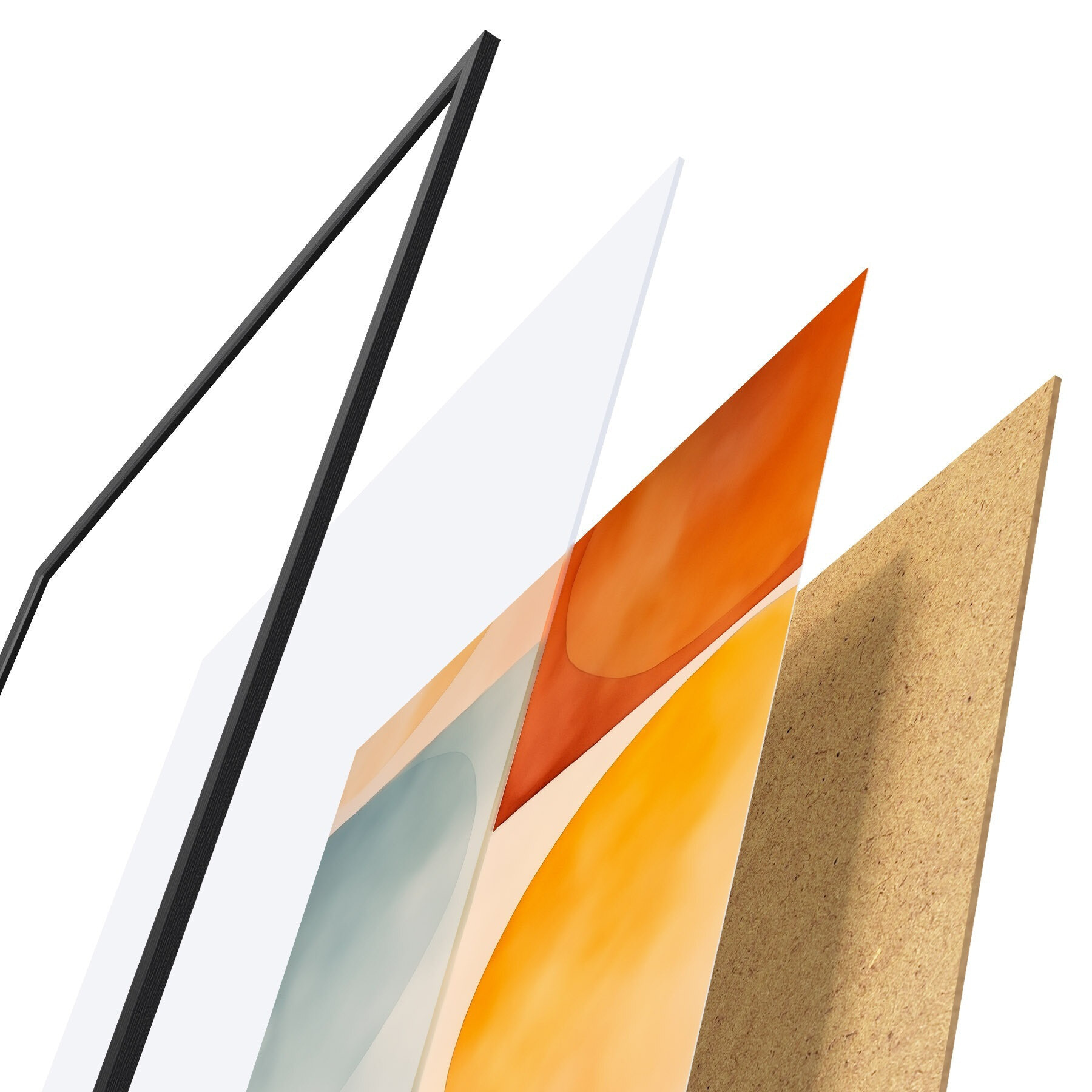 El póster consta de marco, plexiglás, imagen impresa y soporte de aglomerado. El póster puede colgarse inmediatamente en la pared gracias a los soportes de la parte posterior.