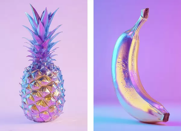 Poster piña y plátano brillantes y lustrosos al estilo pop art Nr d00737