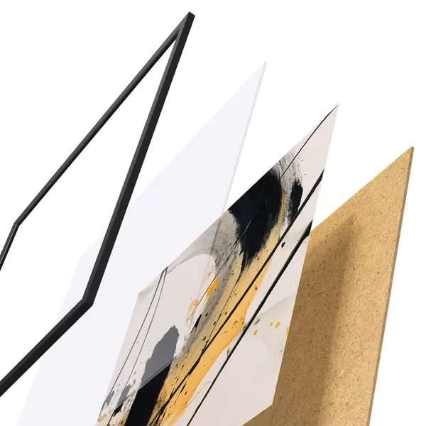 El póster consta de marco, plexiglás, imagen impresa y soporte de aglomerado. El póster puede colgarse inmediatamente en la pared gracias a los soportes de la parte posterior.