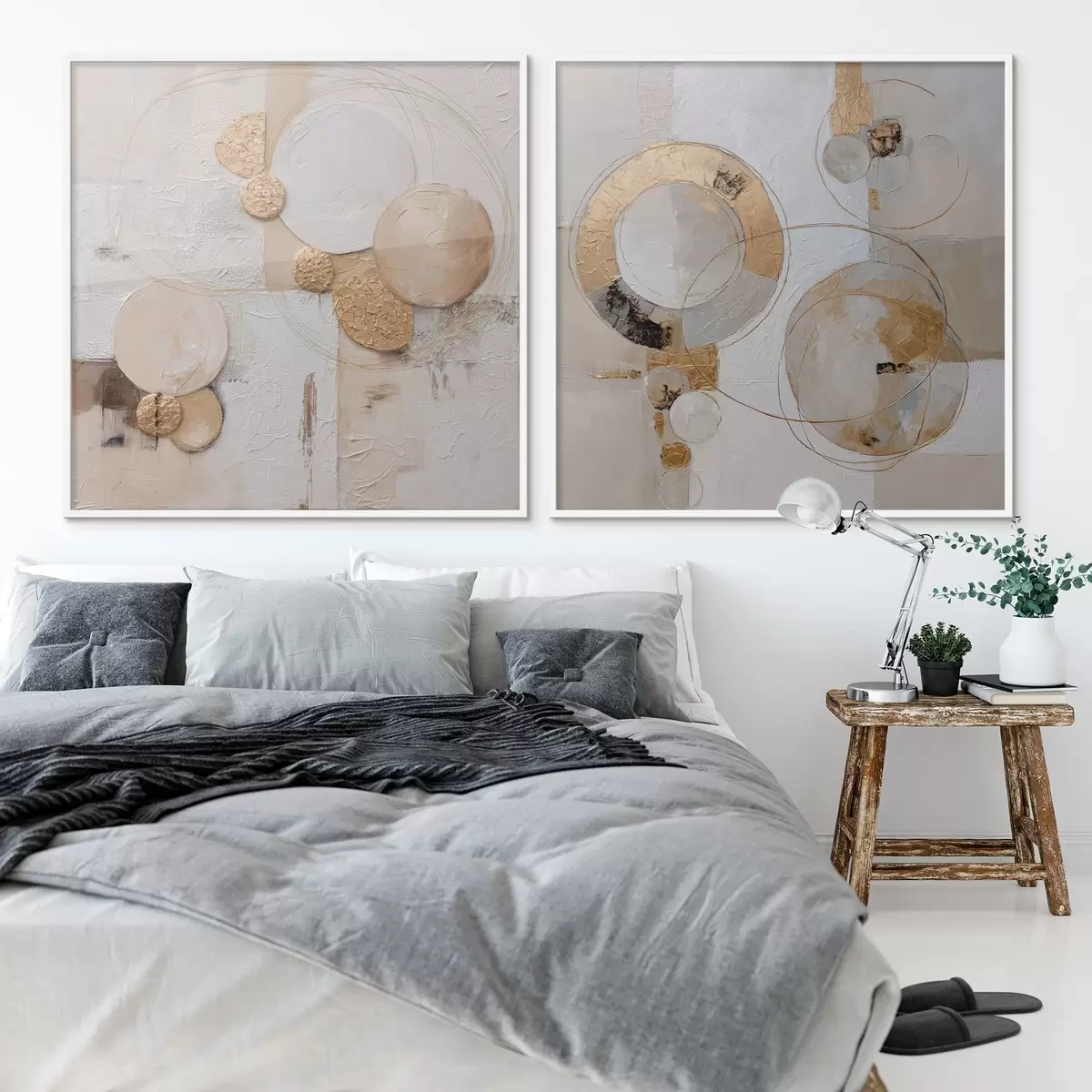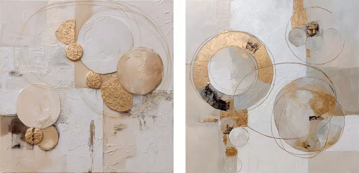 Poster Pintura texturizada con formas en beige y blanco Nr d00741
