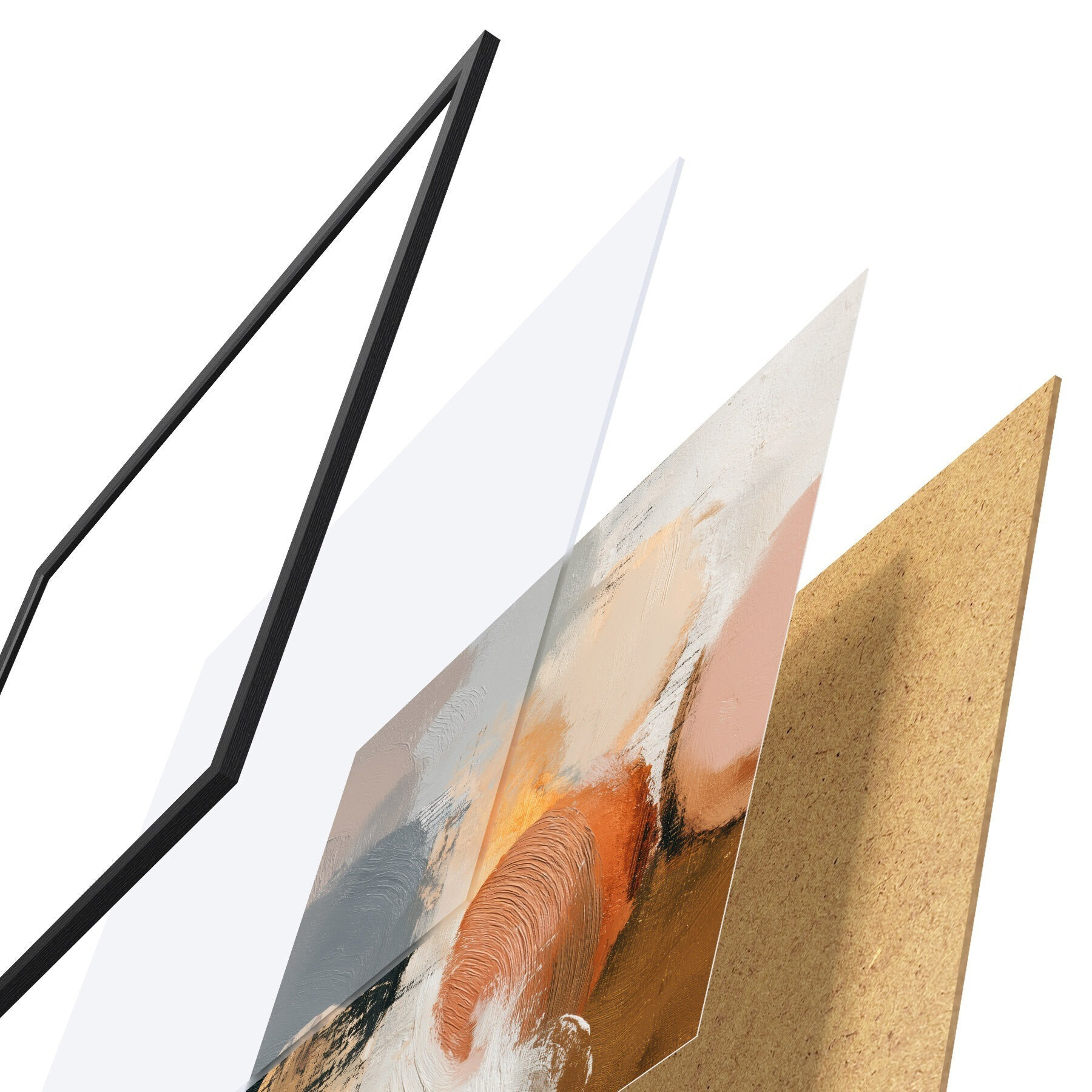El póster consta de marco, plexiglás, imagen impresa y soporte de aglomerado. El póster puede colgarse inmediatamente en la pared gracias a los soportes de la parte posterior.