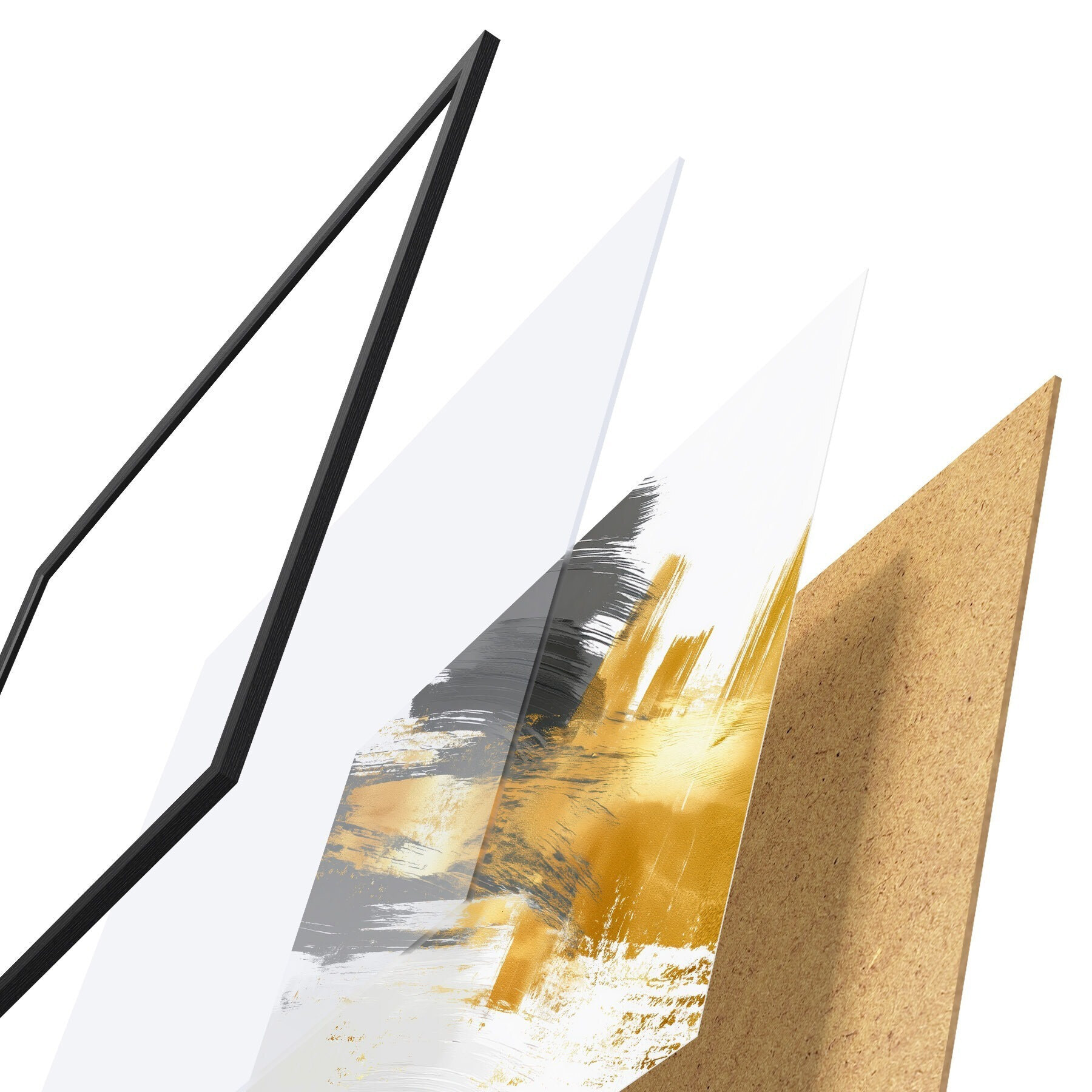 El póster consta de marco, plexiglás, imagen impresa y soporte de aglomerado. El póster puede colgarse inmediatamente en la pared gracias a los soportes de la parte posterior.