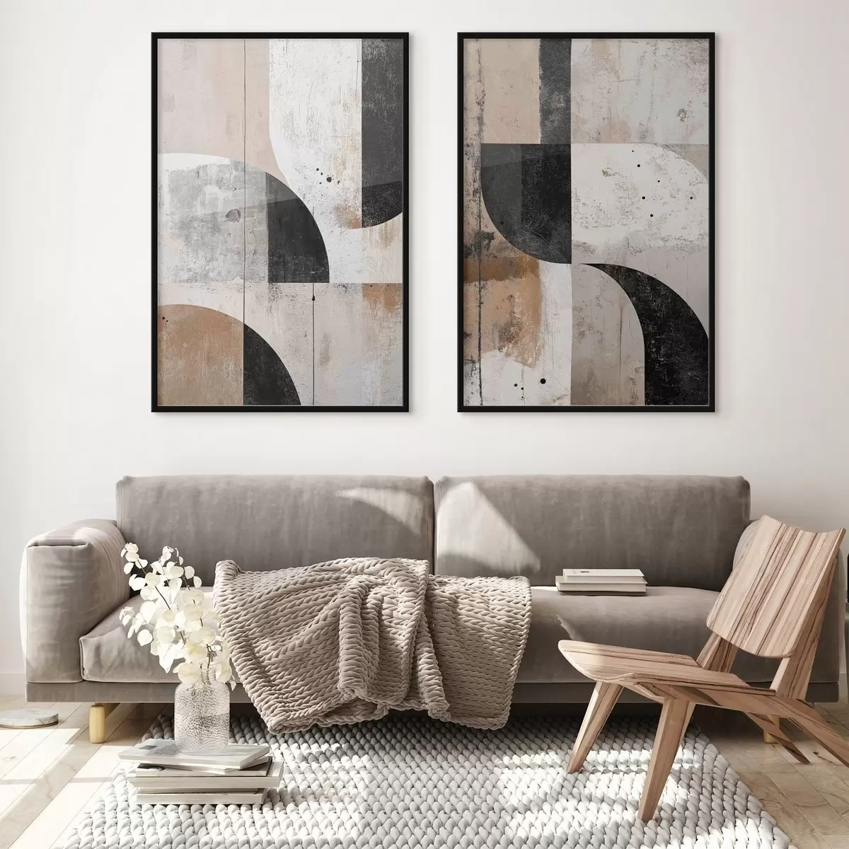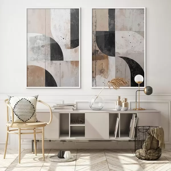 Poster Formas geométricas en tonos beige y negro d00750