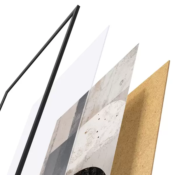 El póster consta de marco, plexiglás, imagen impresa y soporte de aglomerado. El póster puede colgarse inmediatamente en la pared gracias a los soportes de la parte posterior.