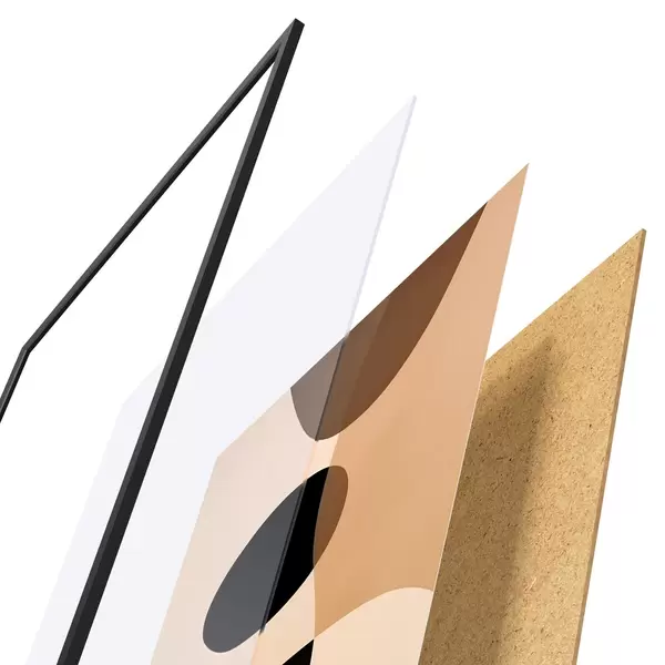 El póster consta de marco, plexiglás, imagen impresa y soporte de aglomerado. El póster puede colgarse inmediatamente en la pared gracias a los soportes de la parte posterior.