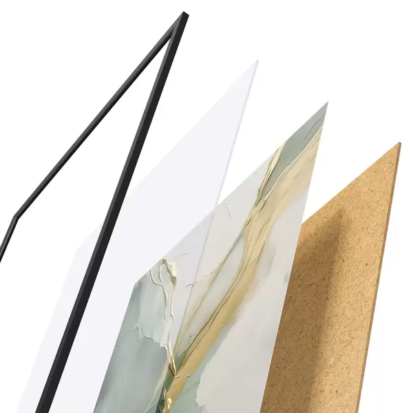 El póster consta de marco, plexiglás, imagen impresa y soporte de aglomerado. El póster puede colgarse inmediatamente en la pared gracias a los soportes de la parte posterior.