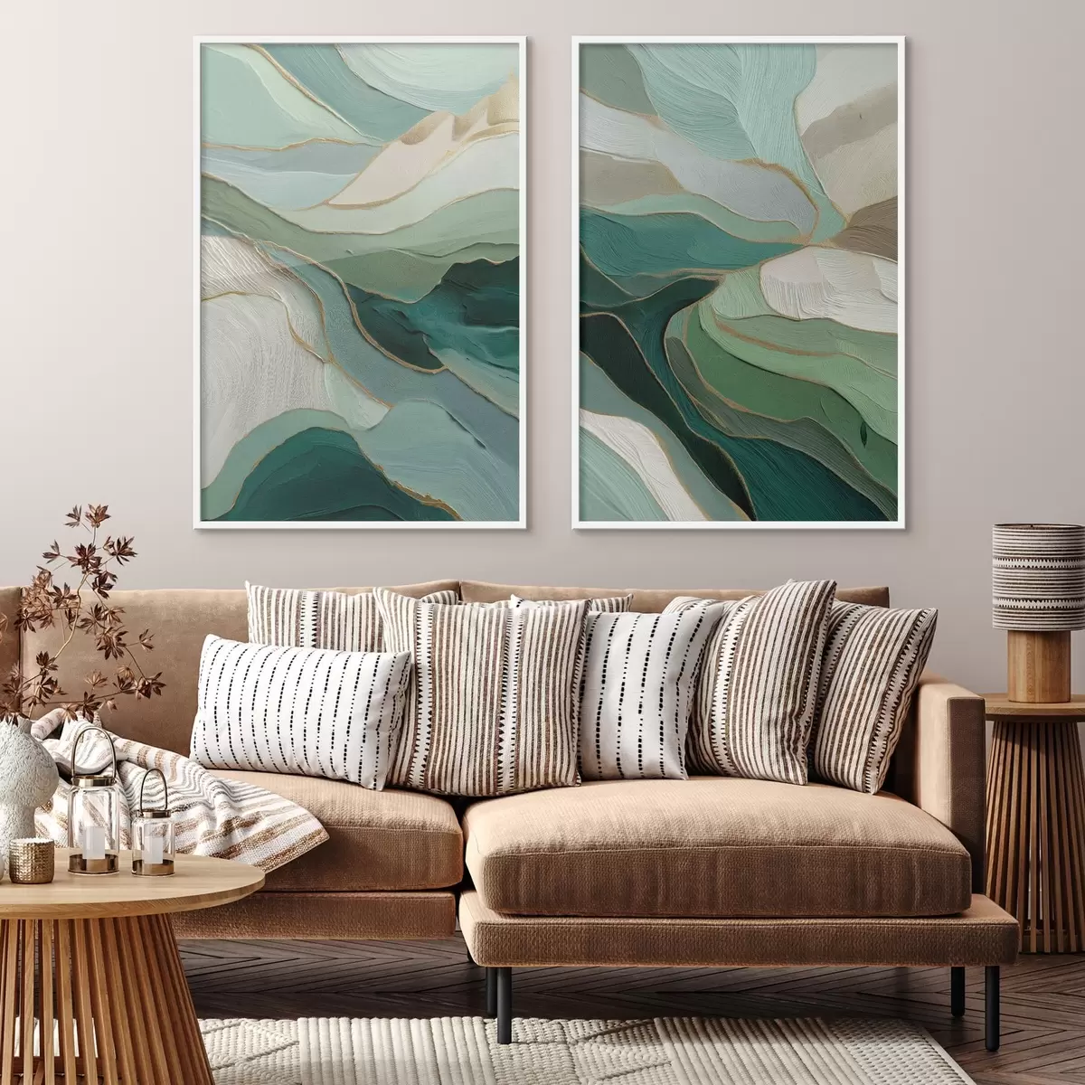 Poster Abstracción en capas esmeralda con contorno amarillo Nr d00766