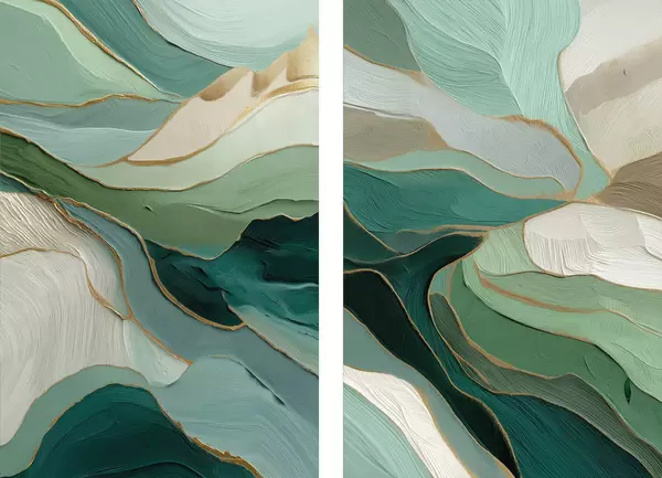 Poster Abstracción en capas esmeralda con contorno amarillo Nr d00766