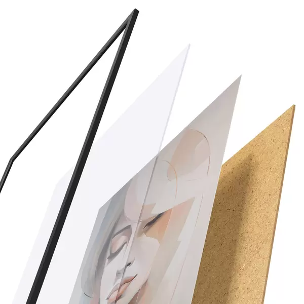 El póster consta de marco, plexiglás, imagen impresa y soporte de aglomerado. El póster puede colgarse inmediatamente en la pared gracias a los soportes de la parte posterior.