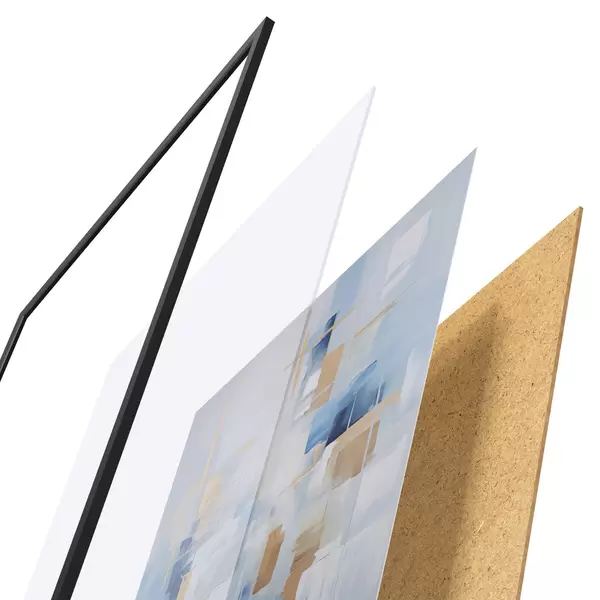 El póster consta de marco, plexiglás, imagen impresa y soporte de aglomerado. El póster puede colgarse inmediatamente en la pared gracias a los soportes de la parte posterior.