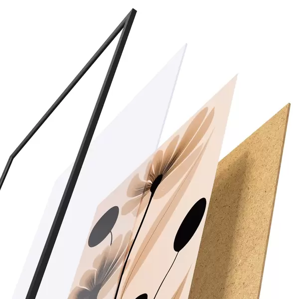 El póster consta de marco, plexiglás, imagen impresa y soporte de aglomerado. El póster puede colgarse inmediatamente en la pared gracias a los soportes de la parte posterior.