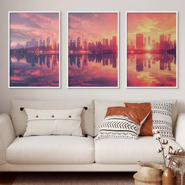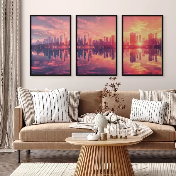 Poster Romántica puesta de sol con una ciudad moderna al fondo Nr d00784