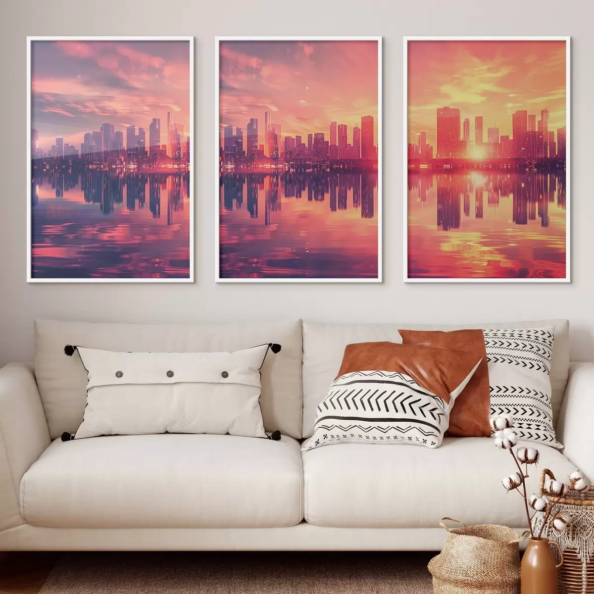 Poster Romántica puesta de sol con una ciudad moderna al fondo d00784