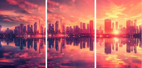 Poster Romántica puesta de sol con una ciudad moderna al fondo Nr d00784