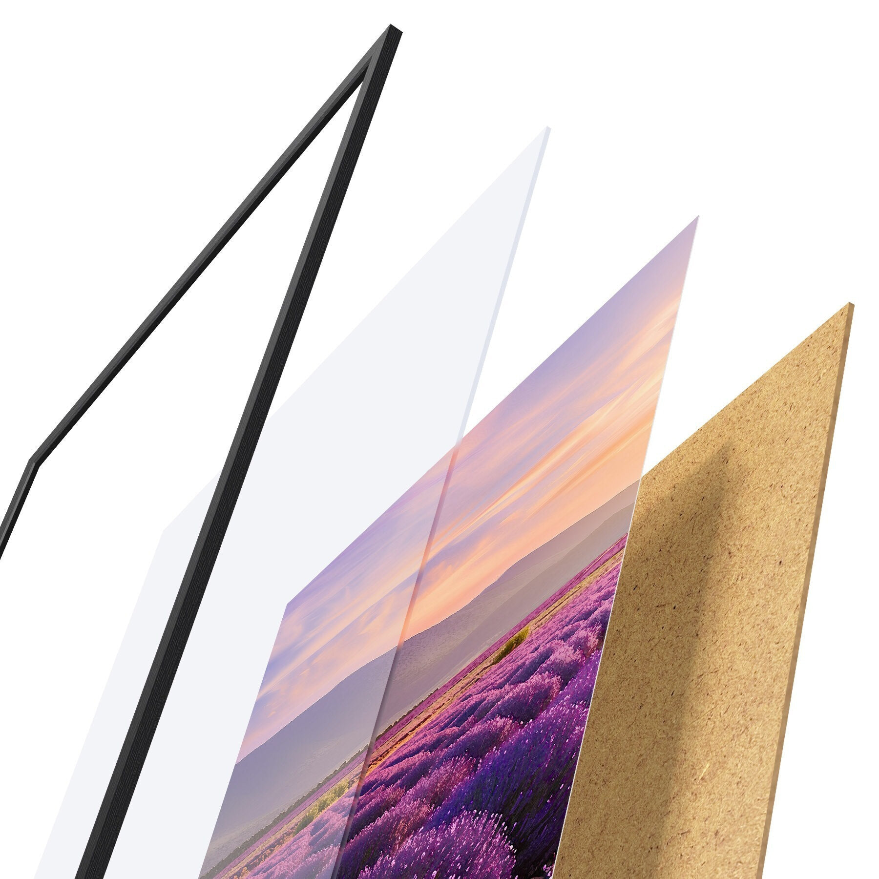 El póster consta de marco, plexiglás, imagen impresa y soporte de aglomerado. El póster puede colgarse inmediatamente en la pared gracias a los soportes de la parte posterior.