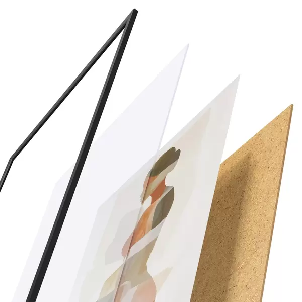 El póster consta de marco, plexiglás, imagen impresa y soporte de aglomerado. El póster puede colgarse inmediatamente en la pared gracias a los soportes de la parte posterior.