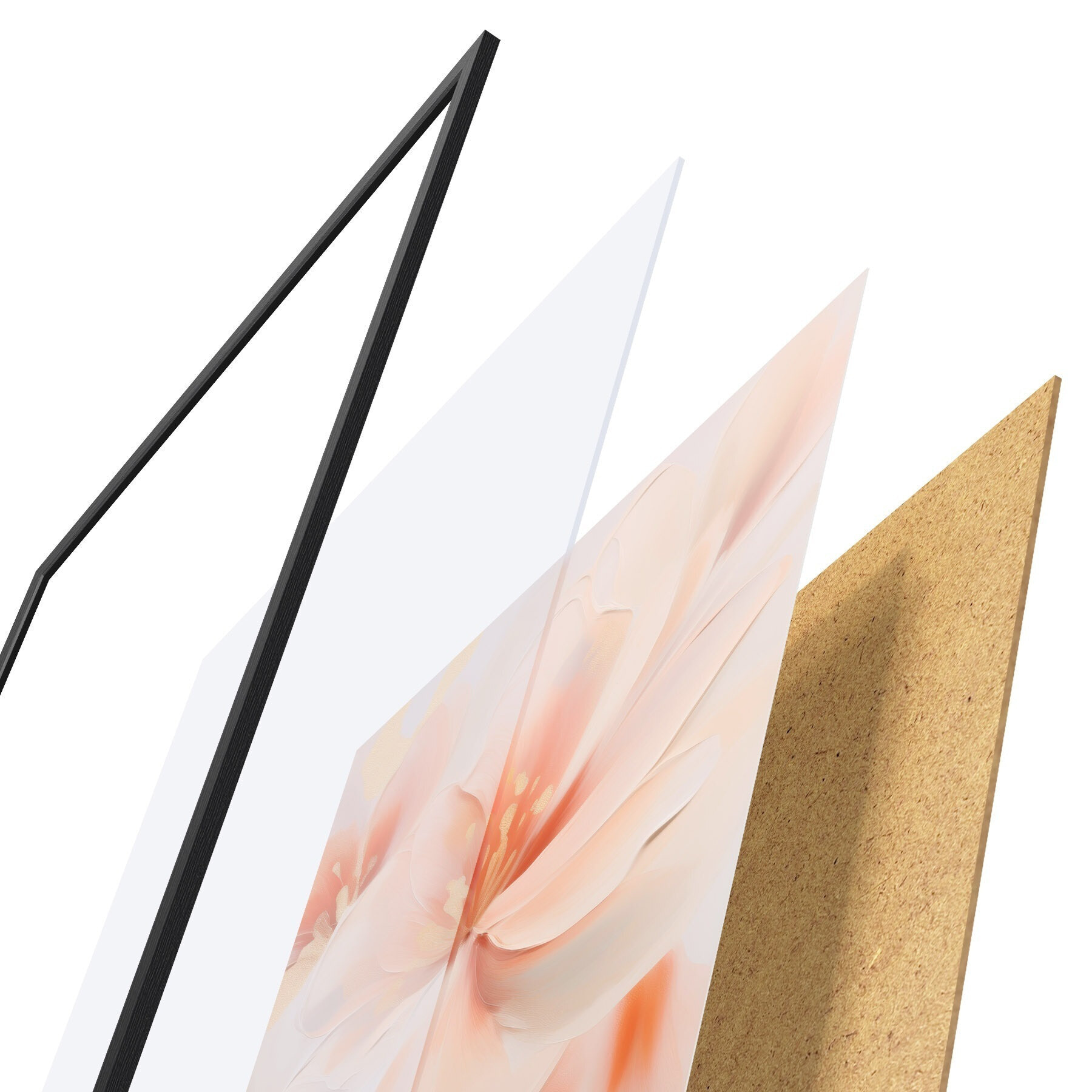 El póster consta de marco, plexiglás, imagen impresa y soporte de aglomerado. El póster puede colgarse inmediatamente en la pared gracias a los soportes de la parte posterior.