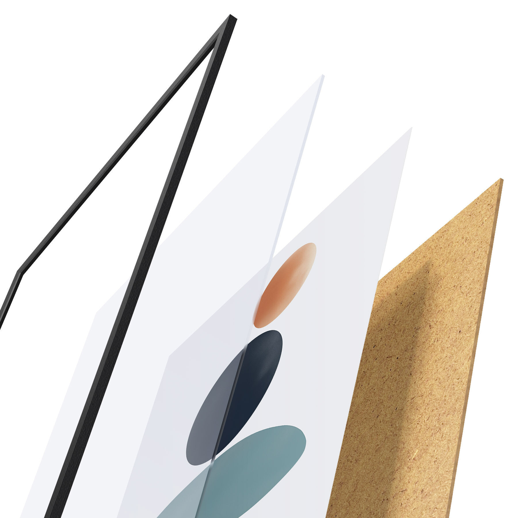 El póster consta de marco, plexiglás, imagen impresa y soporte de aglomerado. El póster puede colgarse inmediatamente en la pared gracias a los soportes de la parte posterior.