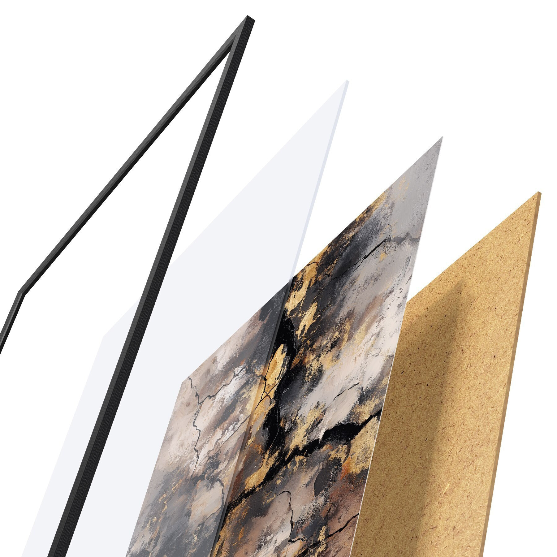 El póster consta de marco, plexiglás, imagen impresa y soporte de aglomerado. El póster puede colgarse inmediatamente en la pared gracias a los soportes de la parte posterior.
