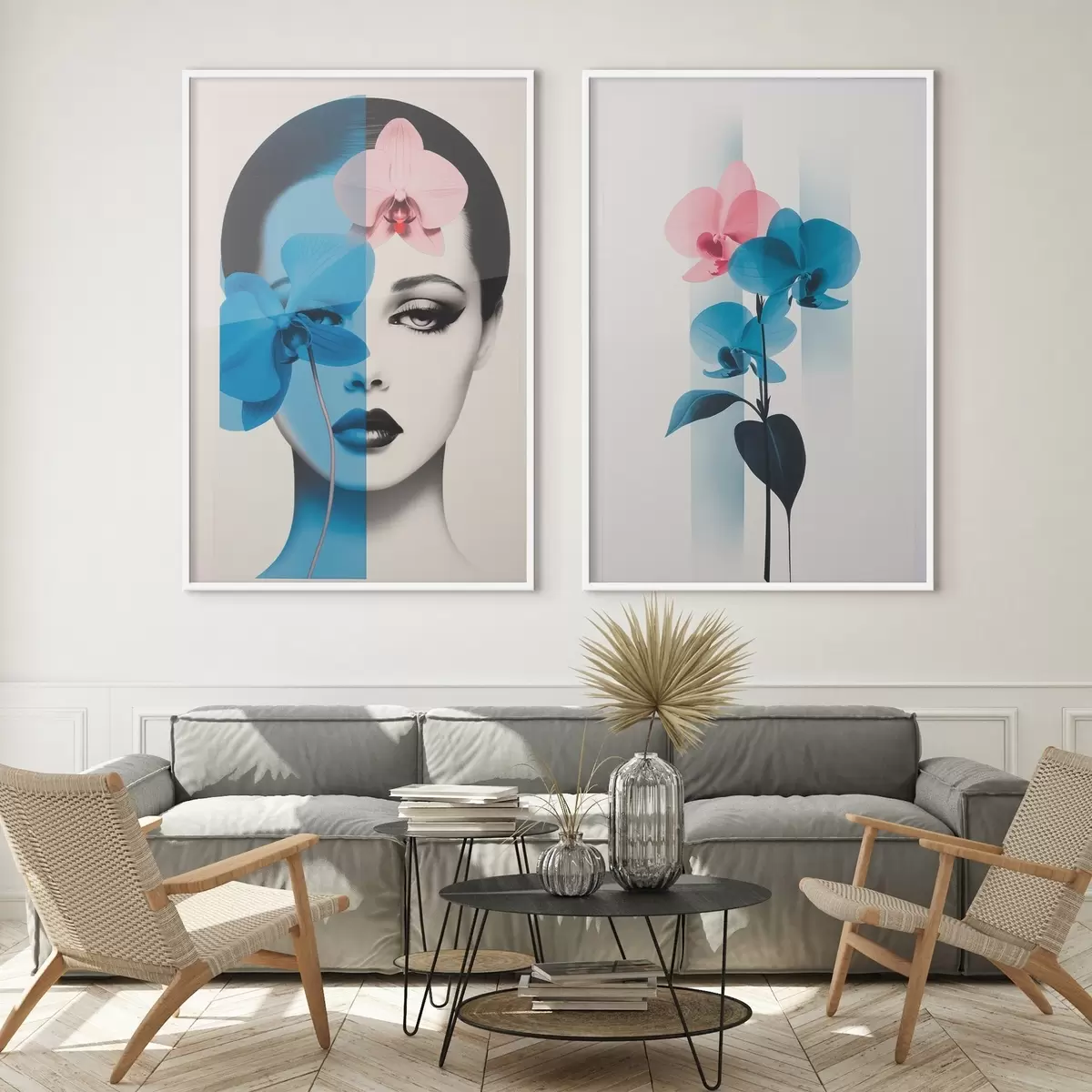 Poster Retrato abstracto de una mujer con orquídeas Nr d00818