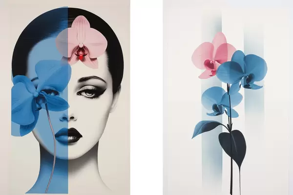 Poster Retrato abstracto de una mujer con orquídeas Nr d00818