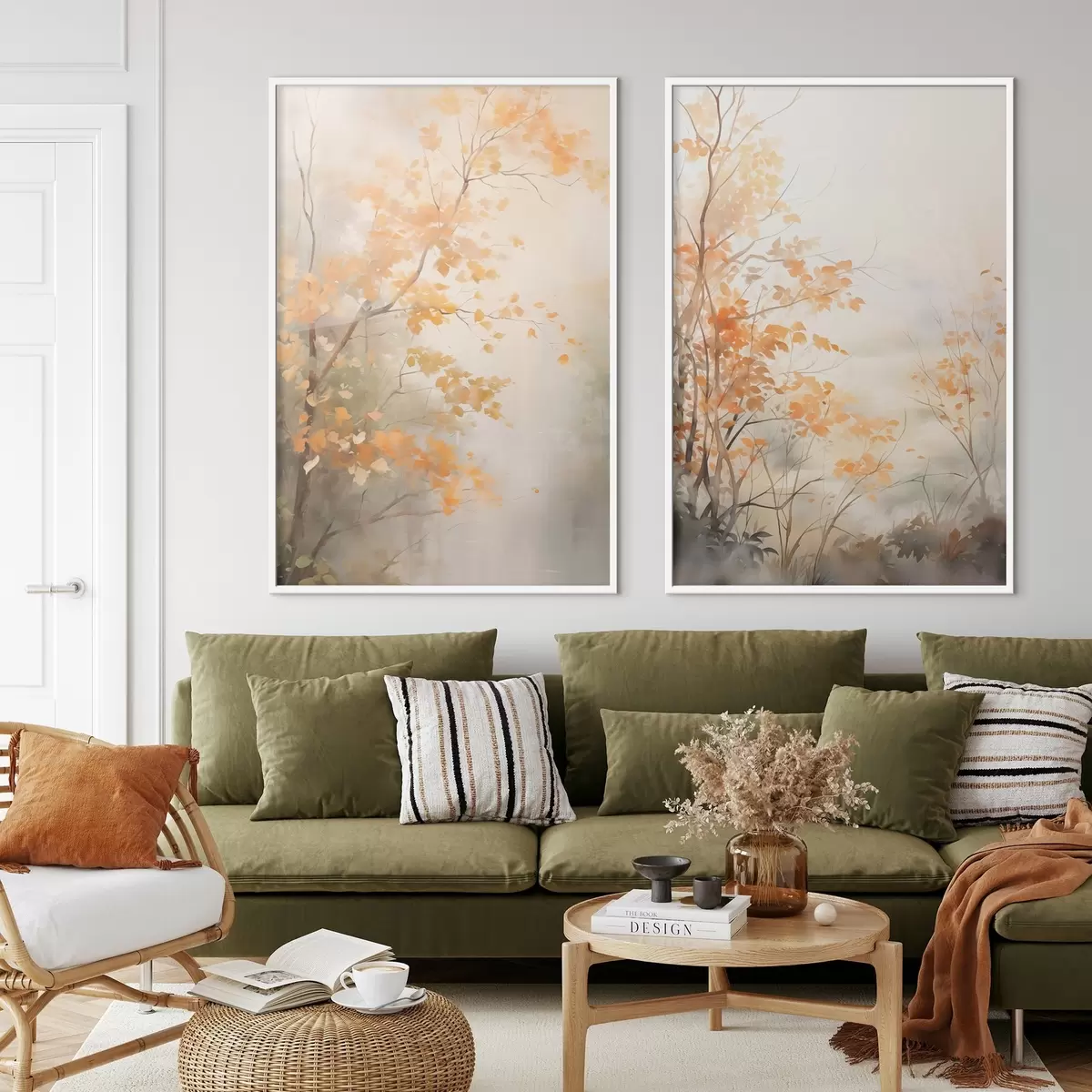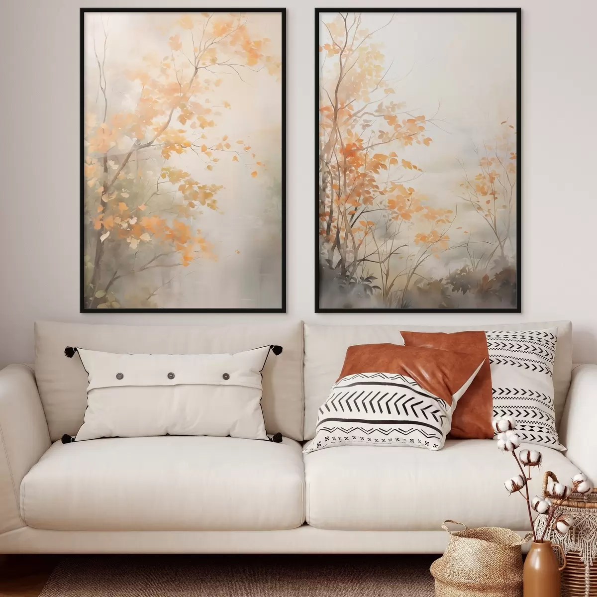 Poster Árboles otoñales con hojas y ramas anaranjadas, estilo acuarela suave, pinceladas delicadas d00826