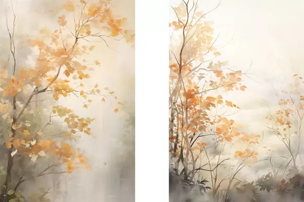 Poster Árboles otoñales con hojas y ramas anaranjadas, estilo acuarela suave, pinceladas delicadas d00826