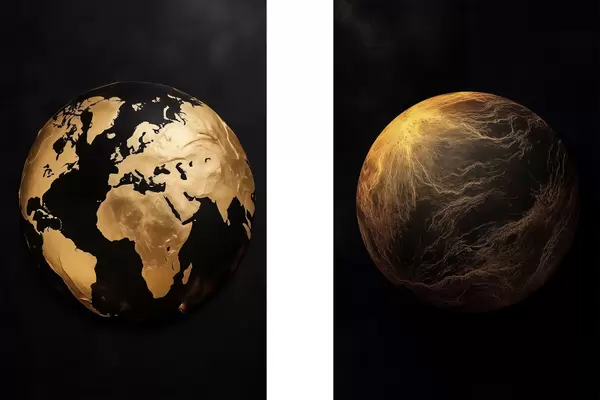 Poster Globo terráqueo y planeta abstractos con textura sobre fondo negro, arte minimalista moderno Nr d00827