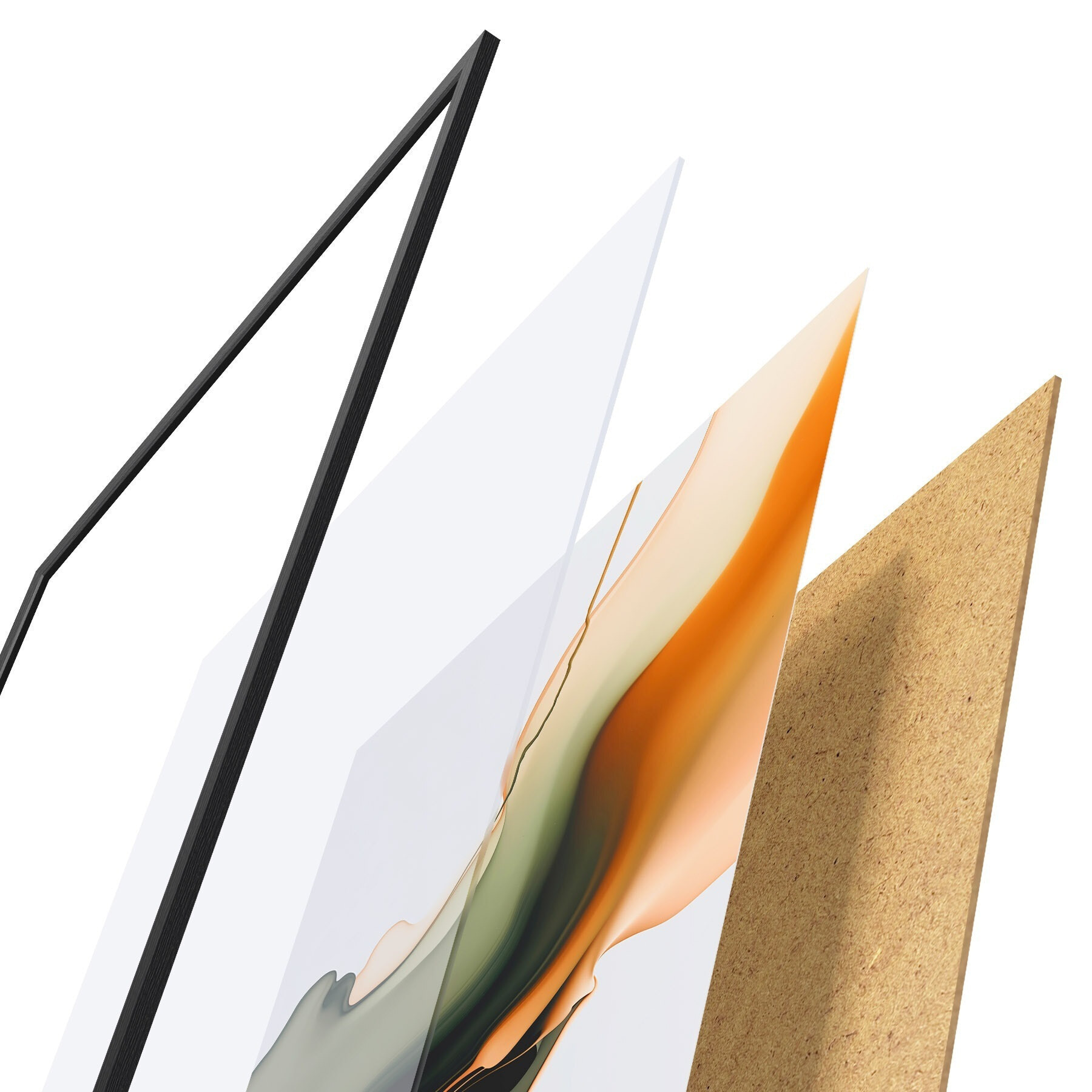 El póster consta de marco, plexiglás, imagen impresa y soporte de aglomerado. El póster puede colgarse inmediatamente en la pared gracias a los soportes de la parte posterior.