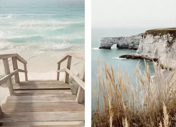 Poster Acantilados costeros y hierbas secas junto al mar turquesa Nr d00875