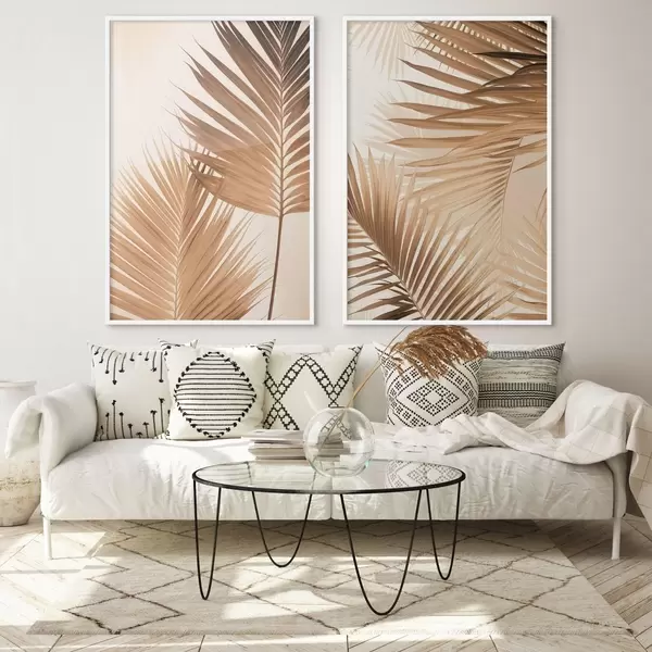 Poster Hojas de palmera en tonos marrones, fondo neutro, estilo minimalista, iluminación natural, ambiente tropical. Nr d00880